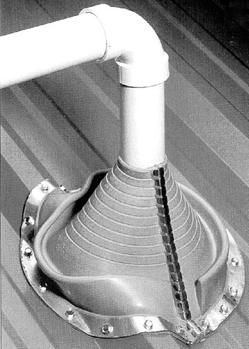 Our Chimney Roof Flashing makes tough applications easier. Chimney roof flashing is designed for applications where continuous pipes or obstructions prevent the use of standard flashings. Easily installed by wrapping around existing pipe & fastening down onto roof deck. The pliable cone & stainless steel closure can easily be trimmed to the exact diameter of pipe to be flashed. Unique stainless steel roof flashing closure effectively resists corrosion & provides a positive weatherproof seal. Corrosion-resistant aluminum base can be easily shaped to conform to most roof profiles. Made of flexible, weatherproof E.P.D.M. rubber. Insulates the pipe from building movement caused by expansion, contraction, & vibration. -30 deg;F - 250 deg;F continuous service temperature range. Pipe diameter markings on the flexible cone in inches & millimeters. Order Qty of 1 = 1 Piece. Minimum Order Qty = 1 PieceSpec Sheet
